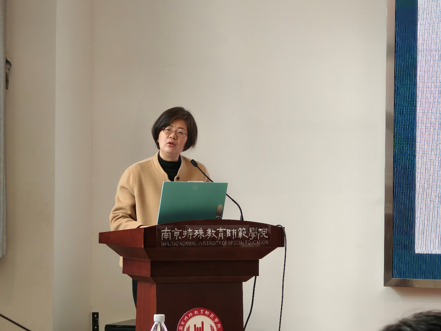 随后,江苏大学马克思主义学院院长李丽教授、南京特殊教育师范学院院长张九童教授分别介绍两所大学马院建设情况。李丽教授表示,江苏大学马克思主义学院作为江苏省重点学院,拥有马克思主义理论、哲学两个一级学科硕士点,思想政治教育专业为国家级一流本科专业建设点,在学科建设、教学改革、科研立项等方面积淀较为深厚。张九童教授介绍,南特师马院立足学校特殊教育办学特色,聚焦特殊群体思政教育与融合教育,着力打造服务特殊师范教育的特色型马克思主义学院,在思政课教学创新、特教思政研究、实践育人等方面形成了鲜明特色亮点。