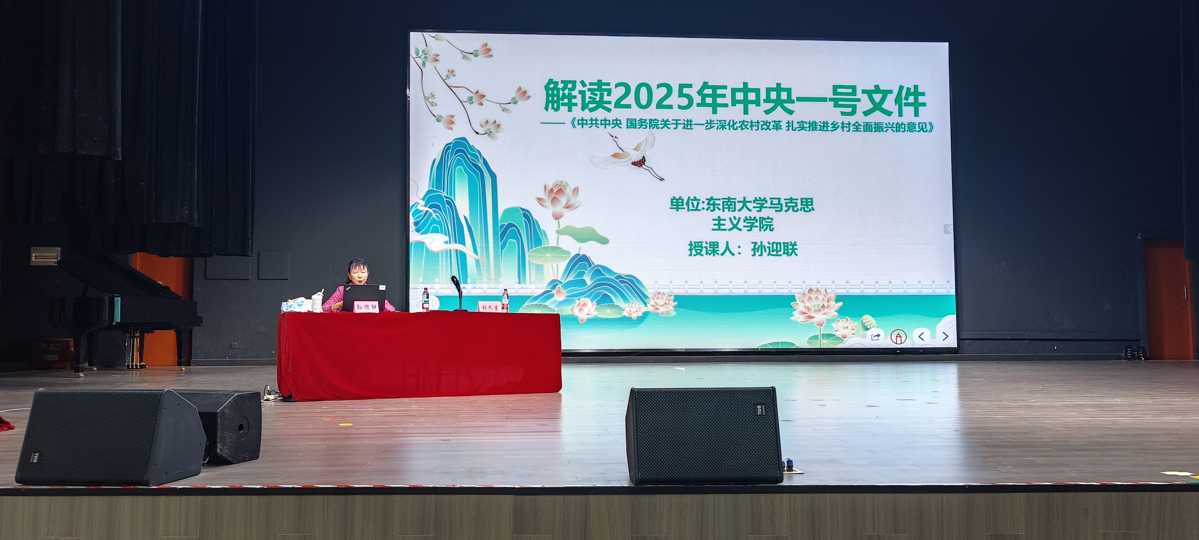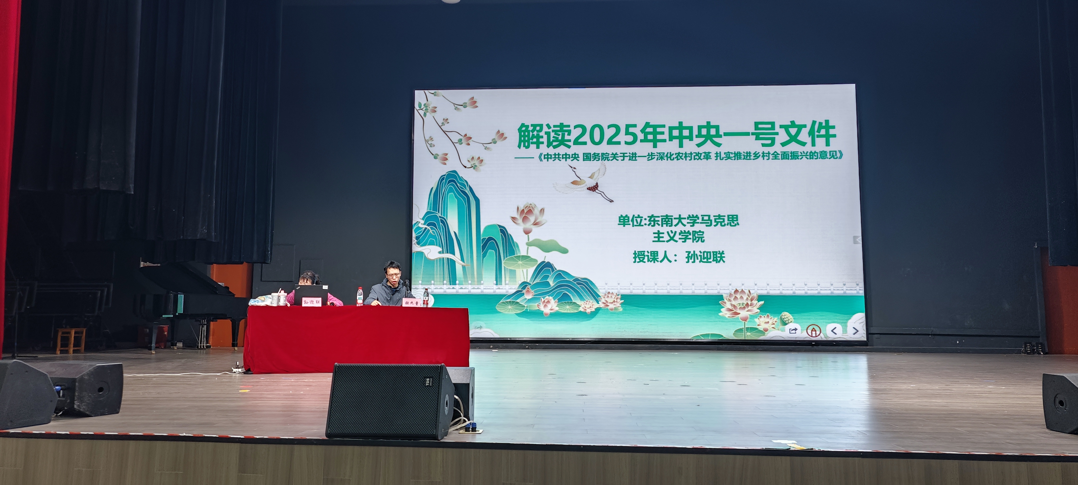 近日,形势与政策大讲堂第十五讲暨润德学术讲堂第十二讲隆重举行。本次讲座由马克思主义学院主办,特邀东南大学马克思主义学院孙迎联教授作《2025年中央一号文件精神解读》专题报告,马克思主义学院、特殊教育学院、教育科学学院、语言学院及其青年马克思主义菁英班等500余名师生现场聆听讲座。讲座由马克思主义学院院长张九童教授主持。
