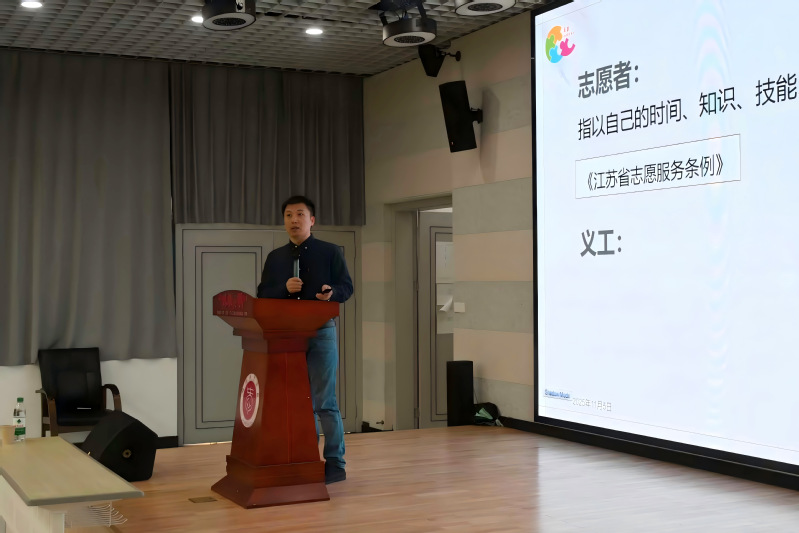 为提升学生志愿服务能力与沟通技巧,引导学生在服务实践中深化理论认识、锤炼党性修养,11月5日,马克思主义学院在江宁校区礼堂举办“润德学术讲堂(第十三讲)”。本次讲座特邀江苏省社会工作领军人才、南京市共美社会工作服务中心理事长岳耀蒙老师,围绕“如何做一名优秀的志愿者——志愿服务与沟通技巧”这一主题展开深入讲解。讲座由马克思主义学院院长张九童教授主持,管理学院党总支副书记卢锐航老师,马克思主义学院辅导员吴敏老师、2511班班主任陈文老师和马克思主义全体学生、管理学院学生等140余人聆听本次讲座。