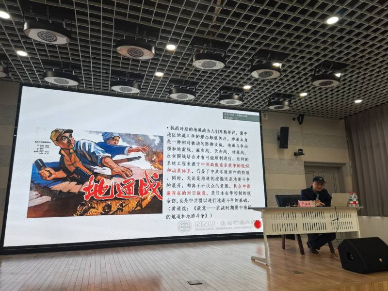 讲座中,严海建教授以整体史研究视角为切入点,结合丰富的史料与前沿研究成果,梳理了抗日战争时期中国共产党的历史定位与核心作用。他从中国近代政治与文化史、抗日战争史的双重维度,剖析了中国共产党在全民族抗战中发挥的中流砥柱作用,阐释了抗战精神的时代内涵与当代价值。讲座内容兼具学术深度与现实意义,严教授生动地讲述与互动交流,让在场学子对中国共产党领导的抗日战争史有了更全面、更深刻的理解。