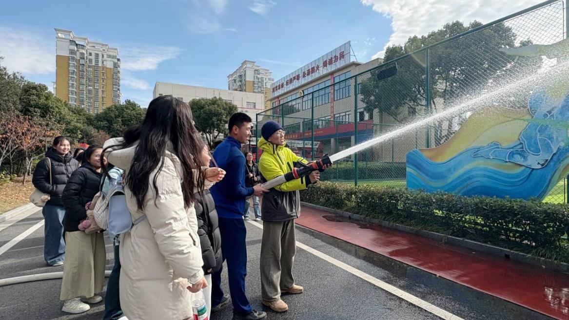 活动中,消防员为师生系统讲解了消防基础知识,展示了各类消防器材,并指导大家进行了灭火器使用、应急疏散等实操演练。严肃的理论讲解与生动的实践操作相结合,让抽象的“安全”与“责任”变得具体可感。