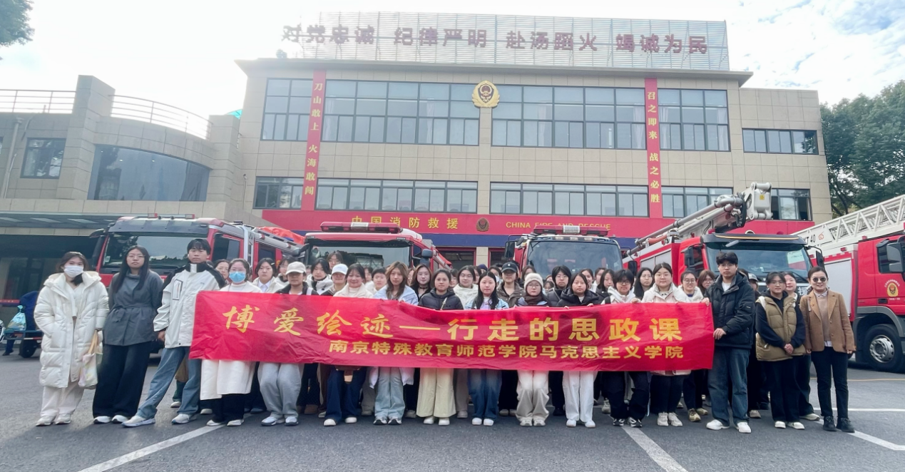 12月4日,正值第十二个国家宪法日。南京特殊教育师范学院马克思主义学院代依晴老师带领70余名本科生,走进“博爱绘迹”实践活动的第四站——百家湖消防站,将思政课堂搬进了这片代表着责任与使命的“火焰蓝”天地。来自管理学、教育科学、手语翻译、人工智能等不同专业的学生,在这场融合法治教育、安全教育与价值引领的“行走的思政课”中,聆听、体验、感悟,完成了一次知识与精神的洗礼。