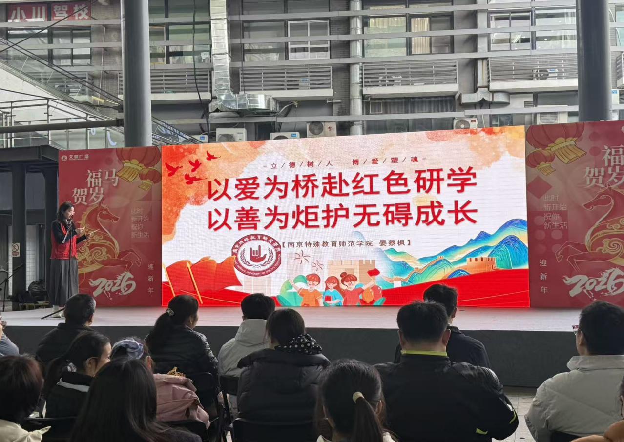 2026年3月3日,南京特殊教育师范学院马克思主义学院“博爱优学”红色研学志愿服务团队亮相江宁区路演展示现场,向江宁区委宣传部领导及各界嘉宾展示了南特学子以专业赋能特殊教育、以红色精神铸魂育人的志愿服务成果。该项目着力推动特殊教育和融合教育大中小思政一体化建设,为特殊儿童打造专属红色教育路径,为江宁区红色教育与志愿服务事业注入青春动能。